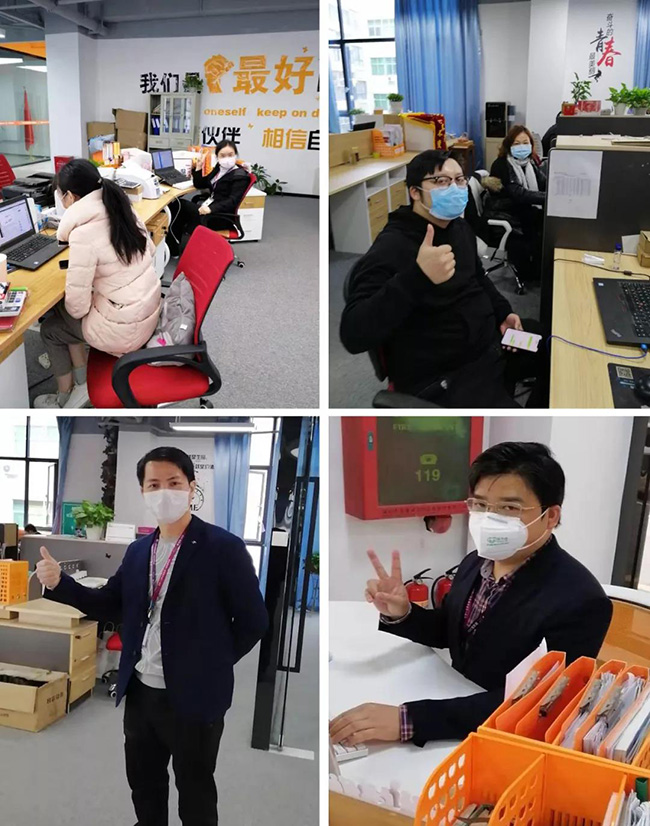 开工啦!2月10号公司按照政府疫情防控规定及公司原定开工通知正常开工了!早上8点钟开始,公司大门口公司行政部对进入园区的员工进行严格的测体温,人员春节行程登记,发口罩,井然有序,各部门到岗员工超过半数以上,一片积极蓬勃的景象!这个春节的疫情把大家都憋坏了,终于能见到了领导,同事们啦!