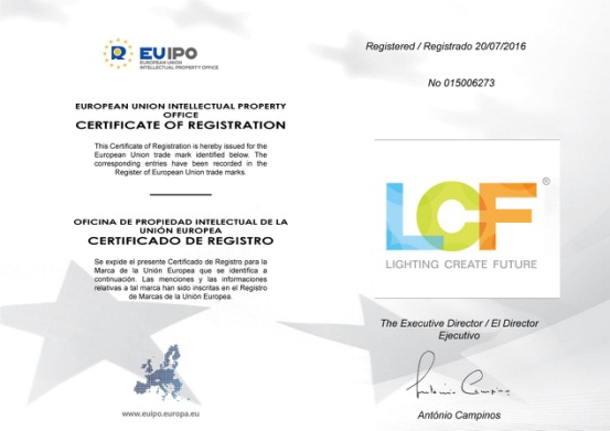 2016.11.09,星空游戏“LCF”商标通过了欧盟商标委会员的审核,正式通过申请并核发了商标注册证书,“LCF”通过了第9类、第11类、第35类的商标注册,标志着“LCF”向国际知名品牌的目标又有了一个历名性的飞跃,为“LCF”品牌在欧洲市场起到了更为全面的保护。