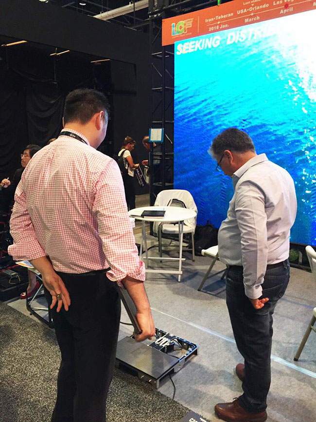 此次携带的新Lease系列箱体是星空游戏专为多功能租赁需求场所而研发设计的一款新型LED显示屏箱体,也是参展的主打产品。这款产品在商业显示上有卓越的优势:支持模组更换、快速拆装,并且支持显示画面任意角度旋转,支持户内、户外、地砖一体化应用。在现场,我们应客户要求对它进行了秒拆,完美的显示效果和非常简单的操作方式让很多来访者对它爱不释手。同时,户外P8前维护大屏,户外格栅屏P15.625,P16户外前翻盖大屏等大屏的展示,为顾客提供了更完善的选择空间,让来参观的客户大呼过瘾。